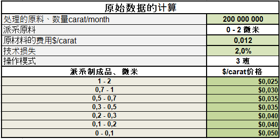 为了计算钻石生产的经济指标,我们采用了以下原始数据。